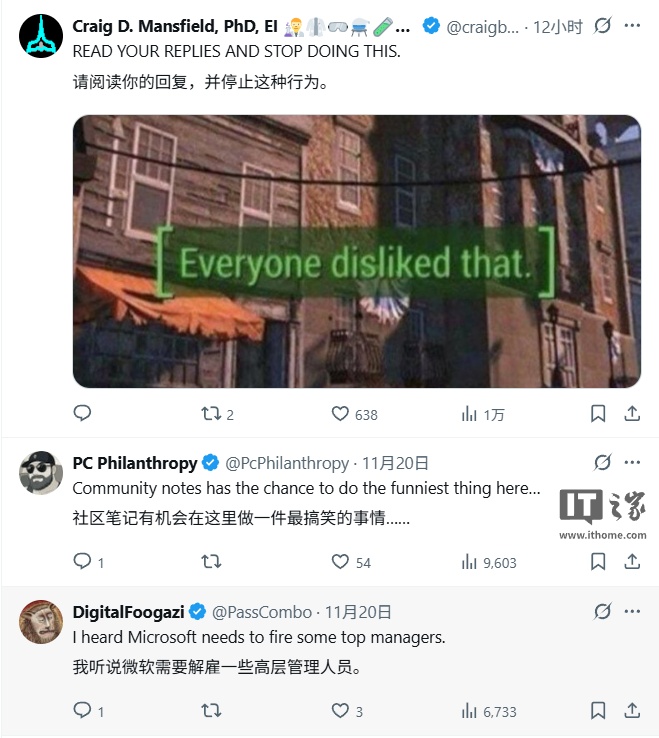 IT之家注:回音室效应是一个信息传播的比喻,指在一个相对封闭的环境中,一些观点或信念会因为重复和强化而不断被“回响”,从而让身处其中的人误以为这就是主流或正确的观点。在本文中,指微软内部可能过于聚焦 AI 战略,而忽视了外部用户的真实负面反馈。