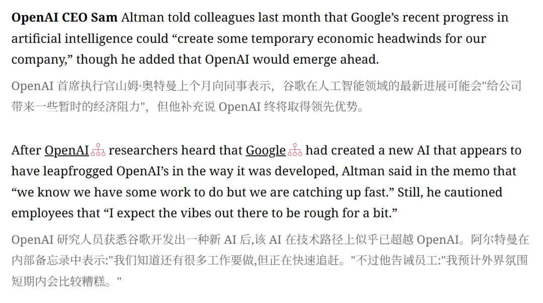就连奥特曼都在全员信中承认,谷歌已经「反超」。