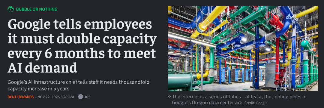 本月早些时候的全体员工大会上,谷歌AI基础设施负责人Amin Vahdat直接说:公司必须每六个月就把服务容量翻一倍,才能满足人工智能服务的需求。