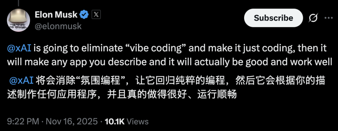 马斯克口中的「消除氛围编程、回归纯粹编程」,其实折射出软件开发范式可能发生的巨大转变。