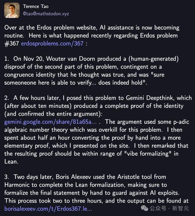 就在昨天,数学大神陶哲轩发帖表示,他用Gemini Deepthink模式十分钟,便解决了埃尔德什问题#367 的关键证明!