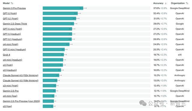 不出意外,Gemini 3 Pro再次霸榜该项物理研究测试。