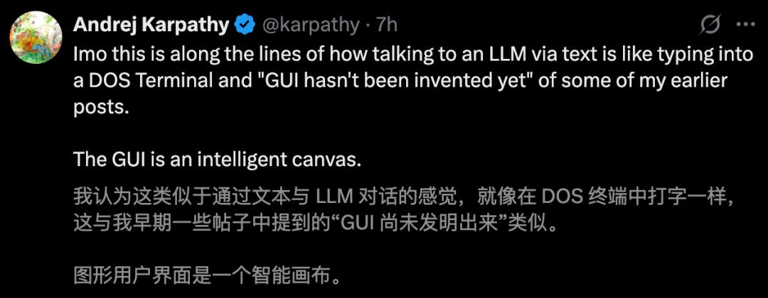 Karpathy惊叹道,这类似通过文本与LLM对话的感觉,就像是在DOS终端打字聊天一样。