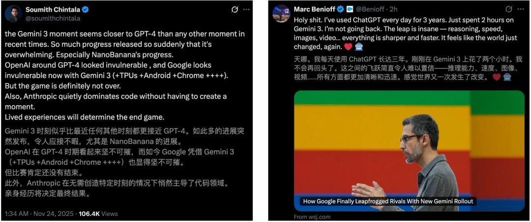 就连Scalesforce CEO Marc Benioff,直接从ChatGPT转战Gemini 3了。