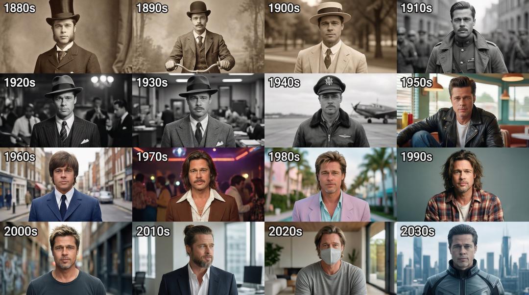 从1880年代开始,Nano Banana Pro连续生成每隔十年人物的形象。