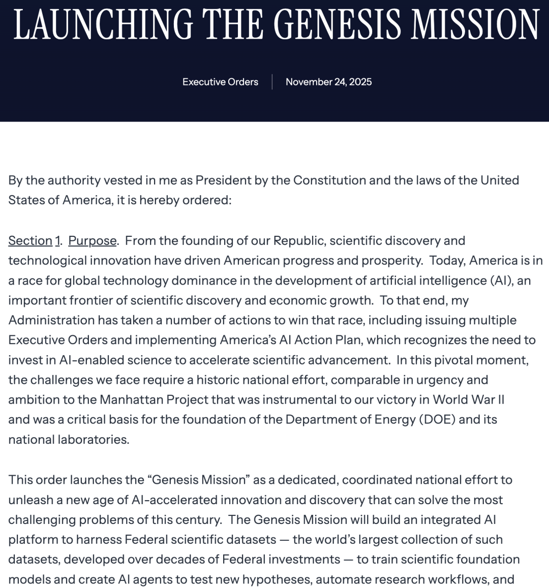 https://www.whitehouse.gov/presidential-actions/2025/11/launching-the-genesis-mission/