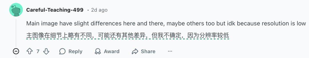 这场套娃游戏的细节处还是有诸多 bug,而且很多人玩儿无限套娃的时候都设定它画出来的是一张老照片,噪点堪比 ccd,分辨率很低,给了 AI 很多可以“出错”的模糊空间。