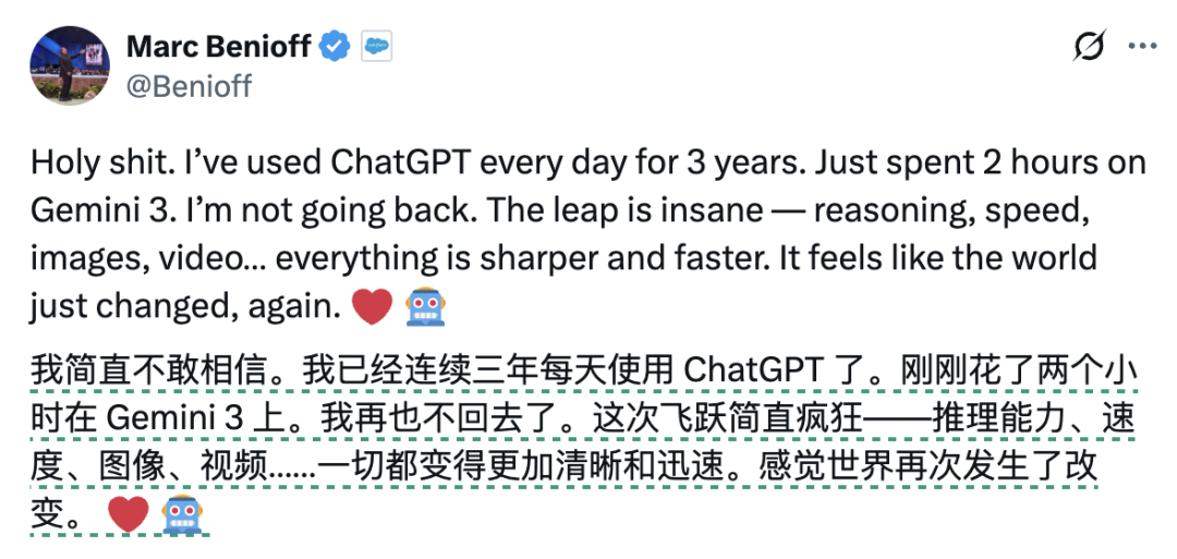 Salesforce 的 CEO Marc Benioff,就是快乐奔向 Gemini 的那一个: