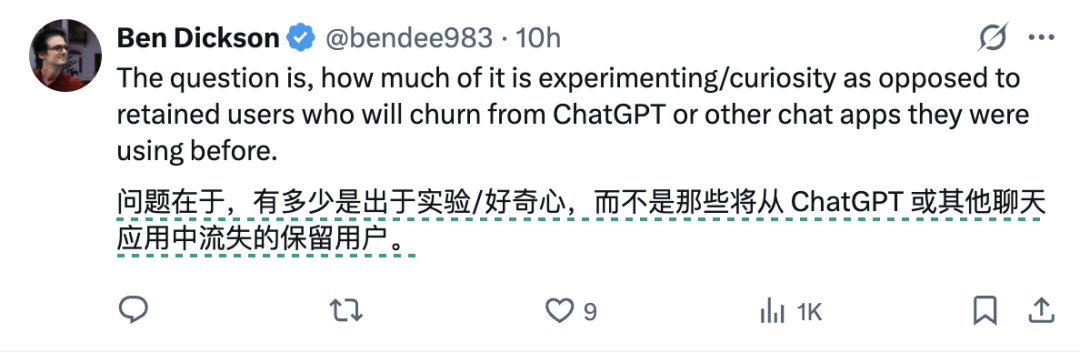虽然从图上的紫色曲线也可以看到,ChatGPT 的核心用户群保持稳固,但这个市场份额拉升之迅速,大概 ChatGPT 看了都要缓缓打出一个问号:Hey Bro,这合理吗?
