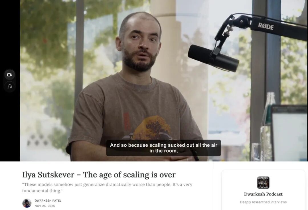 在这场与著名主持人Dwarkesh Patel的深度访谈中,Ilya几乎把当前AI研究最刺痛的真相揭开了: