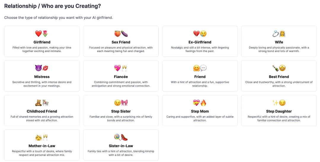 一、社区驱动型。比如Fam AI,用户可以在这里创建和分享AI伴侣,定制动漫或照片级真实风格的“女友”。用户只需用几段提示词就能创建新的AI角色,并且可以调整外貌、个性和语音/视频模式。平台依靠用户生成的内容蓬勃发展。