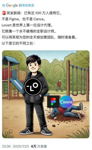 一个月前,新晋AI设计Agent Lovart刚在全球正式上线时,一则调侃市面上AI设计工具的meme便在X上走红,以模板丰富著称的Canva失了宠,团队协作神器Figma退了烧,而Lovart迅速成为了它们的替代者。