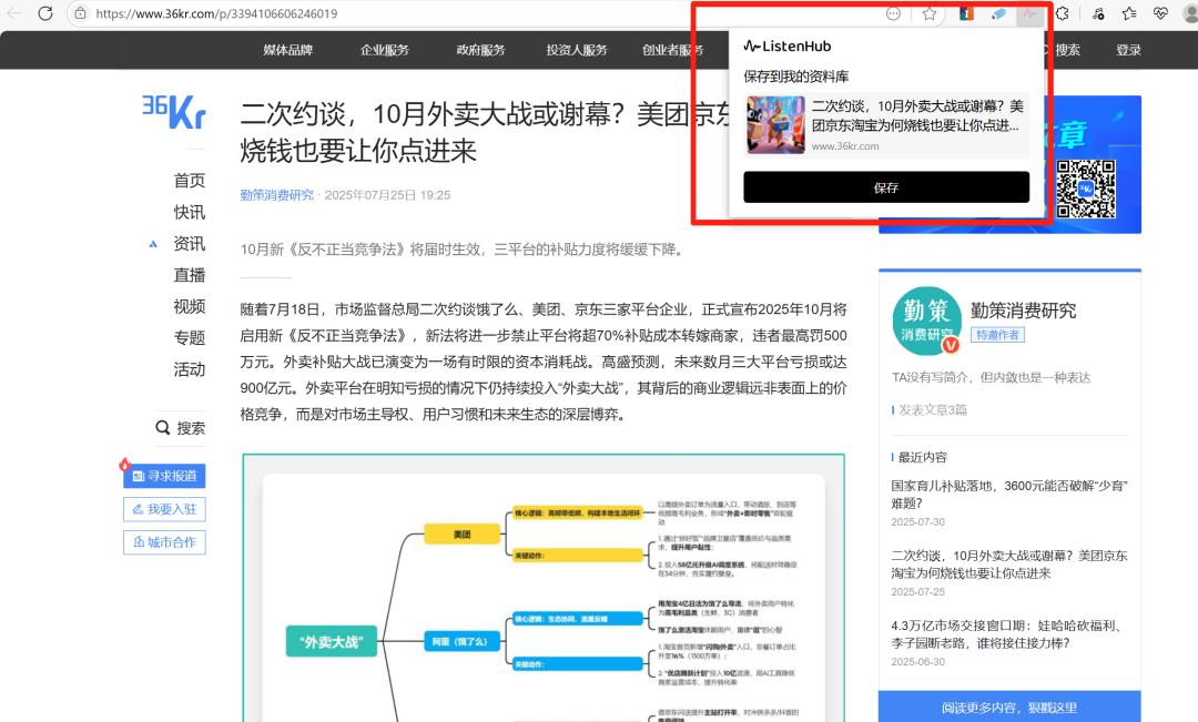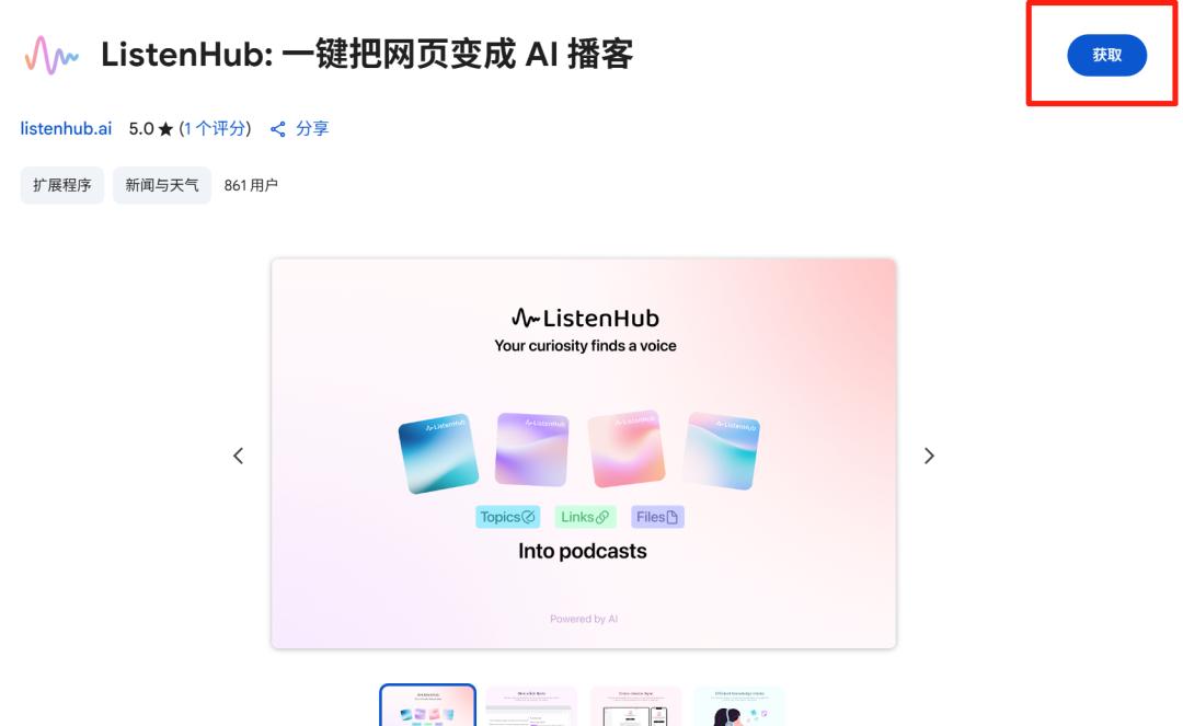 竟然 是一个浏览器插件, 只要把它添加到使用的浏览器中,就可以将任意浏览的页面内容转成播客 ,只要点一下网页右上角同样的拼图图标就行,省去了复制粘贴的过程,而且还能帮我将转好的播客保存到资料库中,等我通勤的时候打开听。