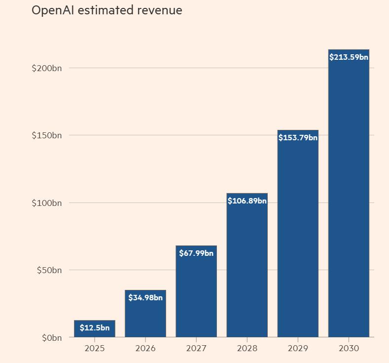 在这些乐观假设的支撑下,OpenAI的营收确实有望呈现出爆发式增长态势,从2024年的60亿美元一路攀升至2030年的2135亿美元。