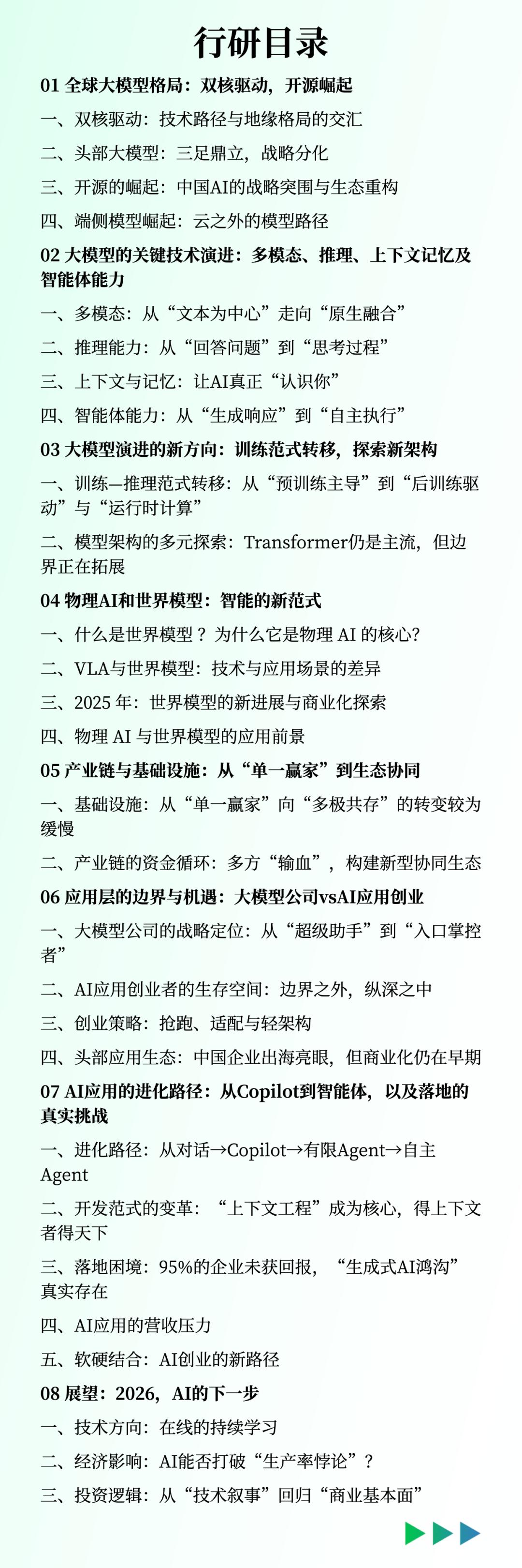 进入2026年,行业的关键变量将不再是“模型能力能否再推高一个层级”——拼模型规模的时代或许已经结束。接下来,影响AI未来走向的关键议题包括: