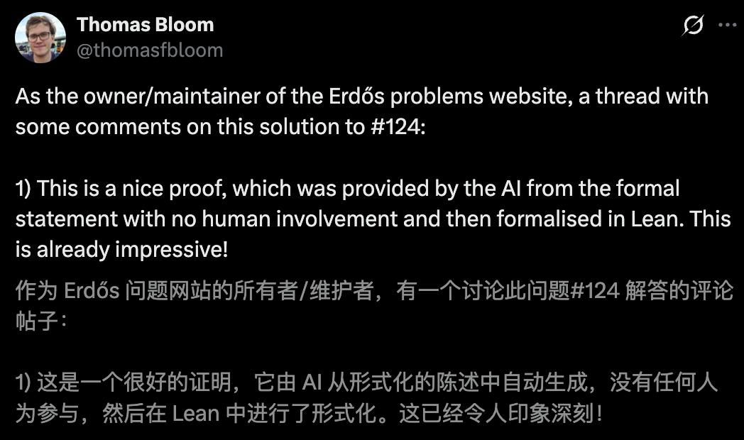 由HarmonicMath开发的AI数学家「亚里士多德」(Aristotle),100%独立完成了埃尔德什问题#124。