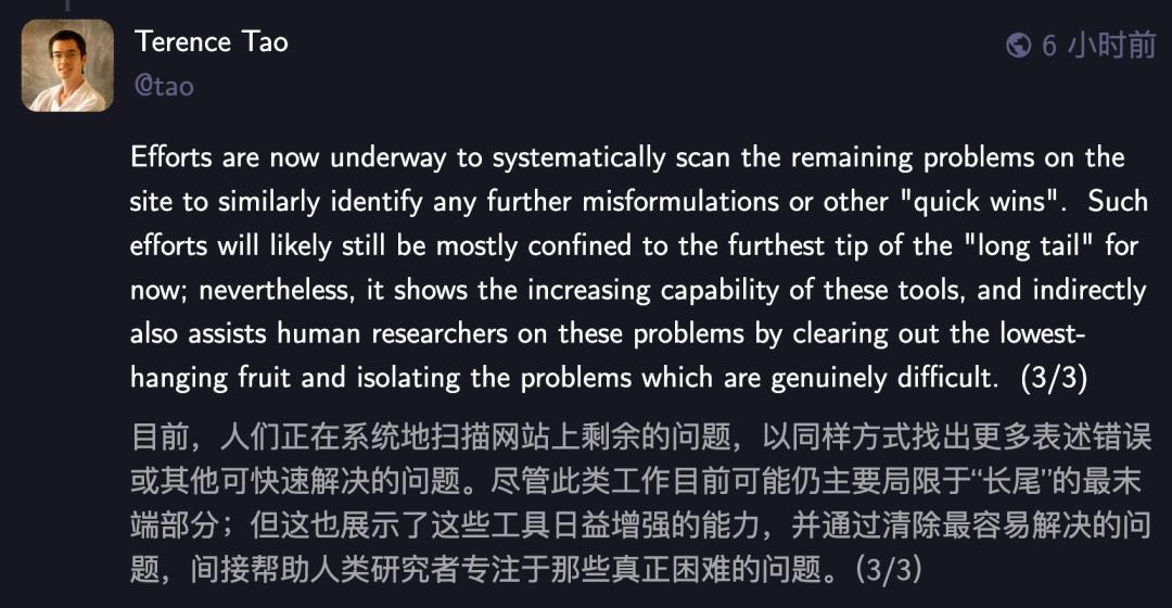陶哲轩对此点评道,就我所知,Gemini和ChatGPT的深度研究工具,都没有找到关于这个问题的任何新的、有价值的文献。