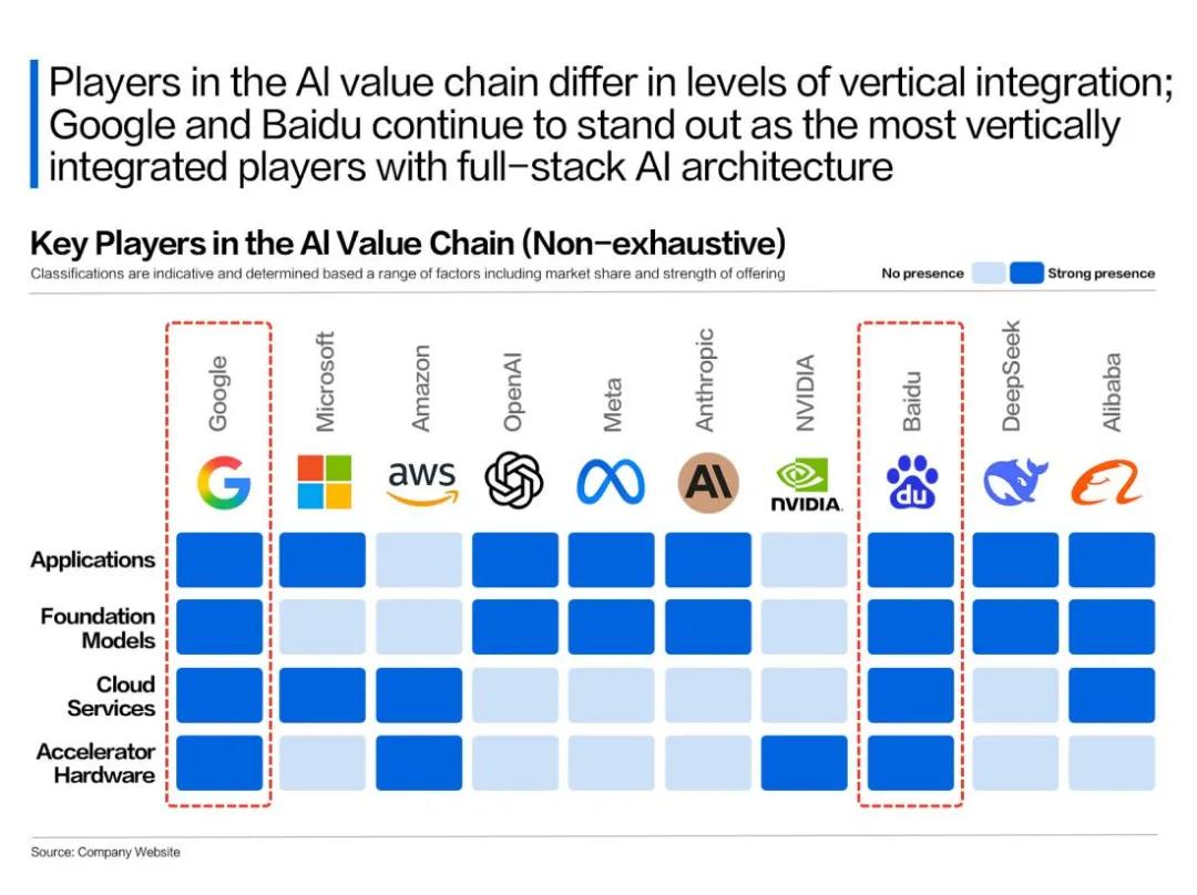 基于此,“谷歌们”拥有从芯片、模型、框架与应用的全栈AI能力,进而在搜索竞争中占据了较为有利的位置。
