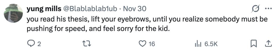 你读了他的论文,挑了挑眉,意识到肯定有人在单纯地追求「快」。然后你开始同情这个孩子。