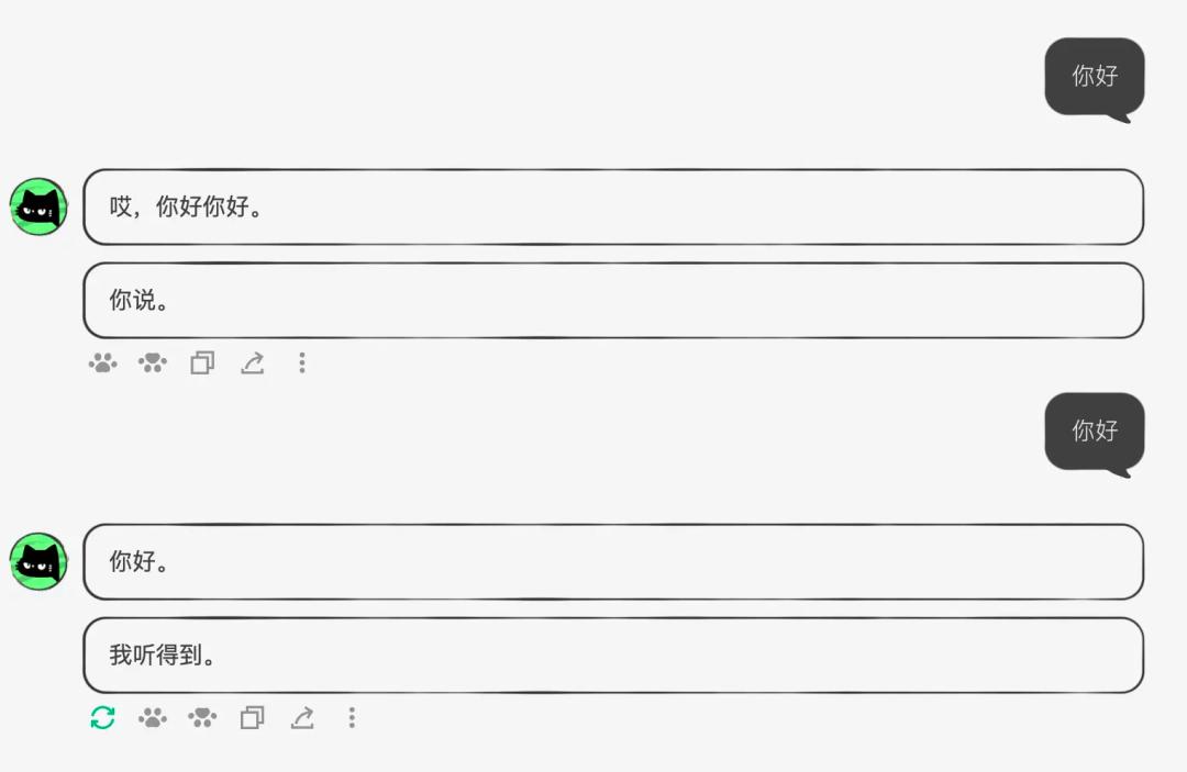 目前该产品共有两种猫猫可供选择,分别是Orange Cat和Exotic shorthair。用户可以自由选择,其中Exotic shorthair回答更加犀利一点,而Orange Cat的回答就比较简单且温和。