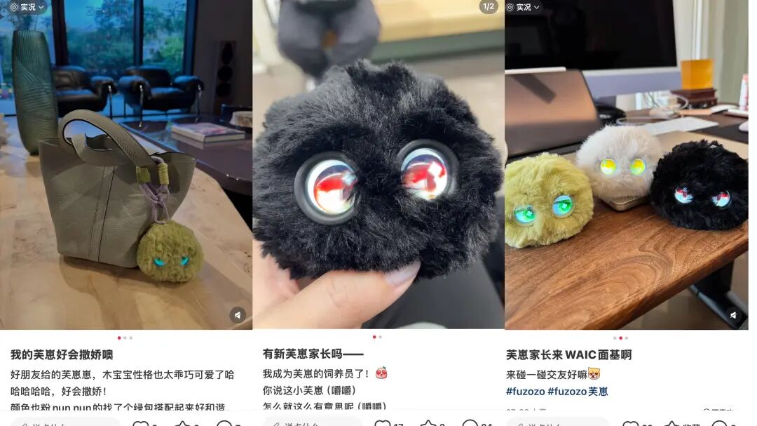 在小红书上,也可以发现,不少购买了芙崽的消费者也正在实现“家长交友”的现实链接。产品可以随包带出的形态,增加2个AI挂饰玩具相互遇见的概率,将产品价值从特定空间开拓至更多新的生活场景。