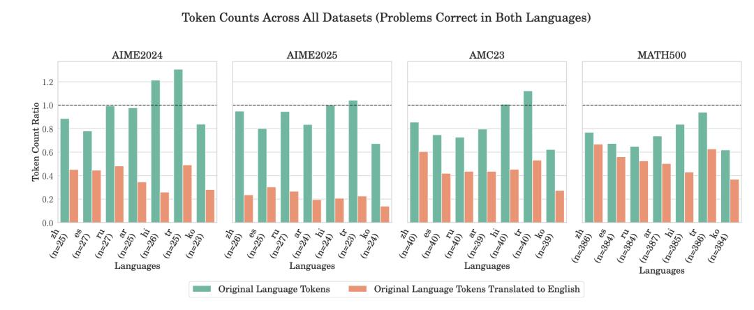 具有多语言能力的大模型如果只采用英语思考的模式往往会导致一些效率问题。不光是中文,采用其他非英语的语言进行推理确实能够有更好的表现。