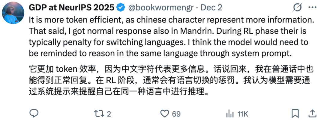 这就把海外友人整蒙了:明明没有用中文提问,为什么模型还是会使用中文思考,难道用中文推理更好更快?