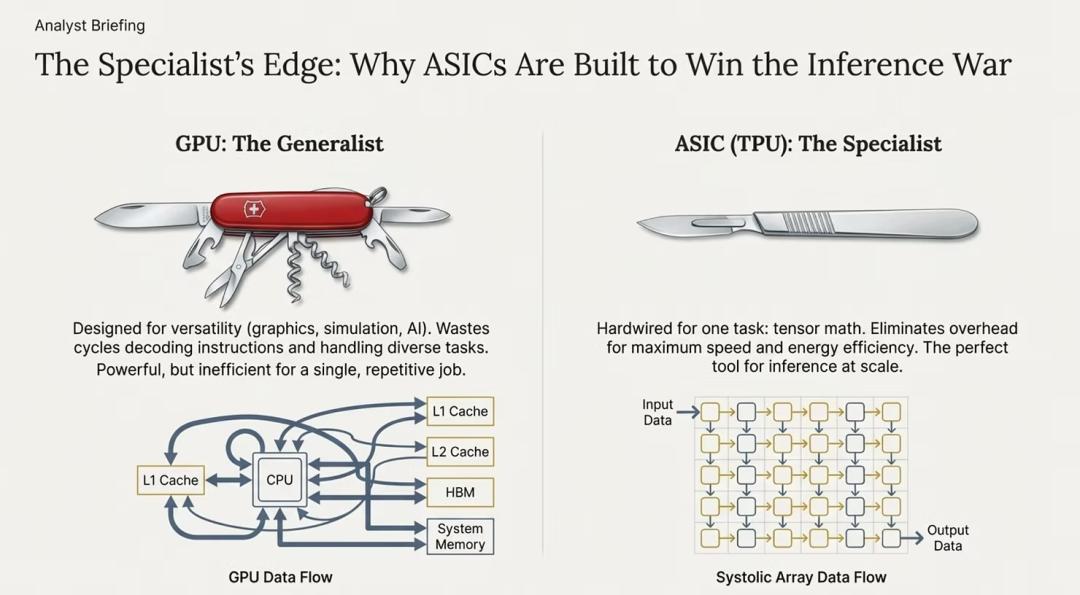 谷歌通过Broadcom下单定制最强版本的 TPU,后者不仅与台积电协作制造芯片,也为 TPU 提供部分核心技术。