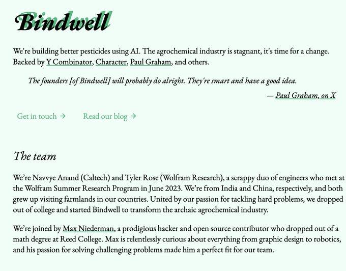 随后,Graham在X上发文称:「Bindwell的创始人应该会做得不错。他们聪明,点子也很好。」