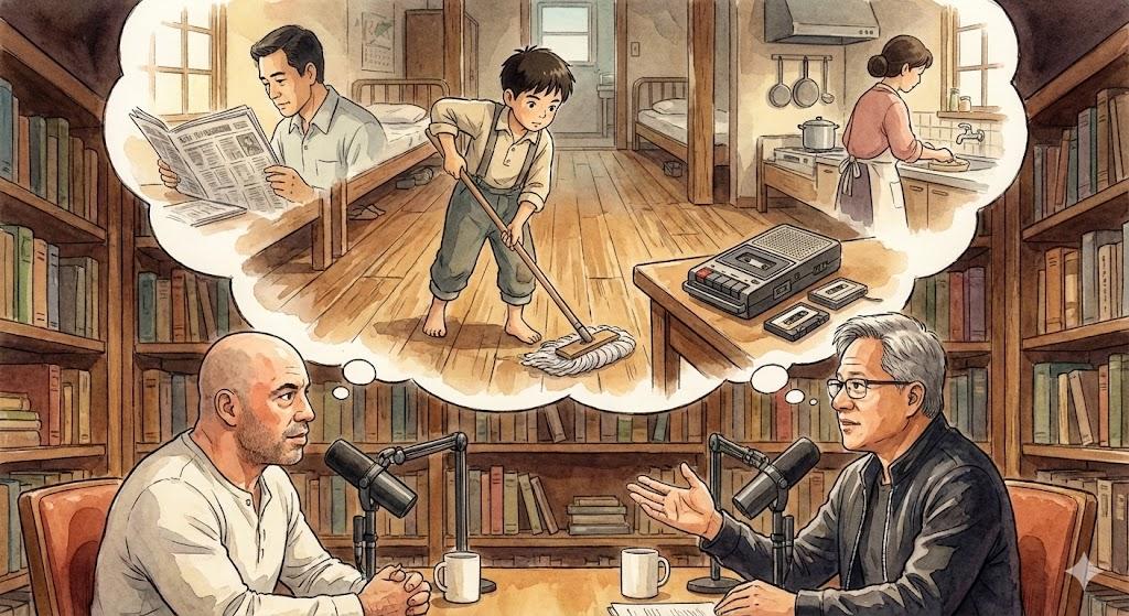 黄仁勋: 不,那是一段塑造性格的经历。我学会了坚韧。我当时的家务是打扫全宿舍的厕所。我只有9岁,但我打扫得非常认真。
