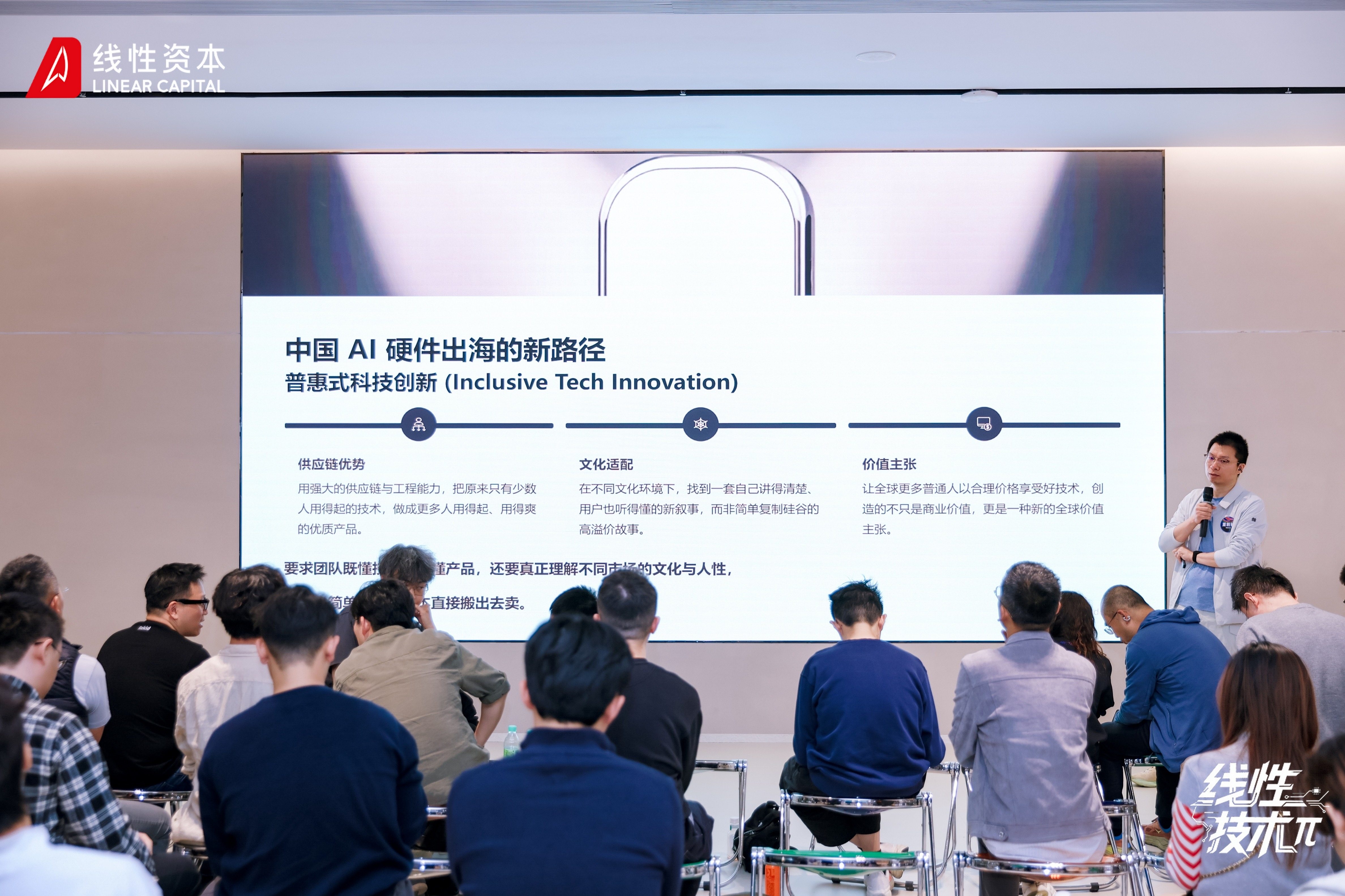 线性资本的资深总监董敦敏从投资人的角度聊了聊AI硬件。他认为,优秀产品需同时满足场景、文化与人性三层逻辑。产品应“卖得动、用得顺、留得下”,注重用户首次体验与长期依赖。董敦敏提到他会在早期问创始人的关键问题:你是在造一个功能,还是在雕刻一个能够被用户接受或者能够打动用户的一个场景?“我们认为,好的产品必须是在具体的生活场景上真实成立的。”