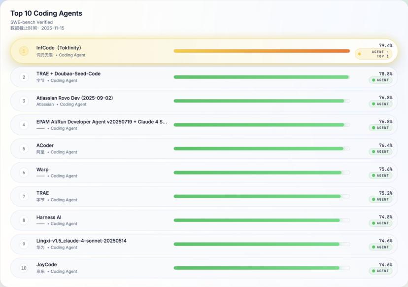 词元无限团队开发的 InfCode 智能体系统,在这一赛道上取得了突破性成绩: