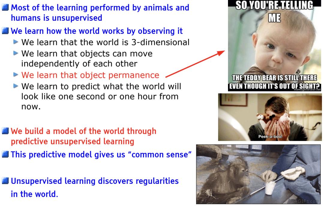 过去10年里,LeCun一直尝试去复制人类这种学习方式: