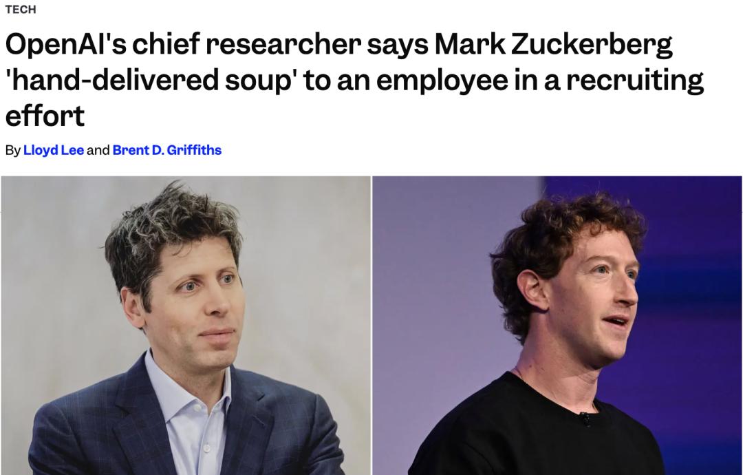 据OpenAI的首席研究官透露,Meta已经超越纯砸钱行为。为了挖走人才,小扎亲自端汤送给OpenAI员工:利益和情感,双管齐下,堪称硅谷版「三顾茅庐」。