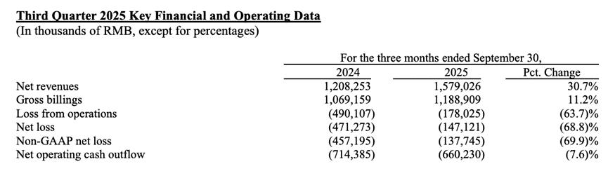 2025年三季度财报显示,高途营收同比增长30.7%,但净亏损仍达 1.47 亿元;其喊出的 “All with AI” 战略下,从 “智能阿祖” 到 “AI 提分宝” 的多款产品均无声无息,在快对 AI、小猿口算等竞品霸榜的榜单上不见踪影。