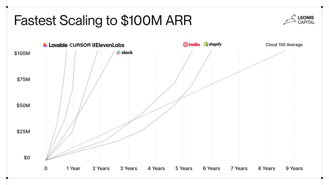 Leonis举例说,AI编程工具Cursor仅用一年时间,其年度经常性收入就突破了1亿美元——