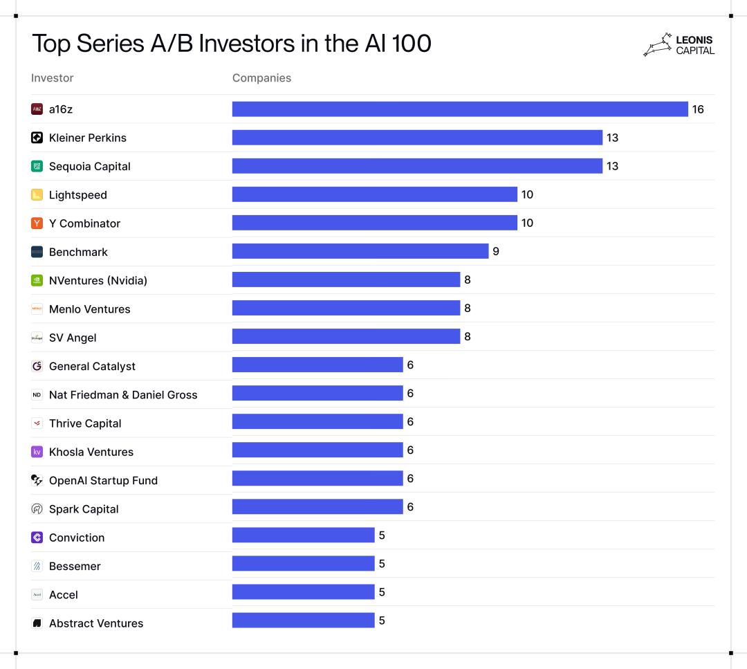 尽管如此,Leonis也指出,Andreessen Horowitz和Sequoia主导了A轮和B轮的融资。