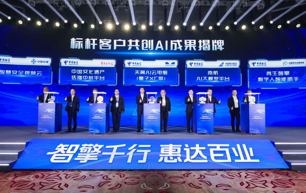 论坛现场,南方电网、阿里云等有关企业代表作现场分享。中国电信携手中交集团、中国文物报社等多家单位,共同为标杆客户共创AI成果揭牌。同期,行业AI+生态合作签约仪式顺利举行。