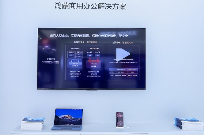 同时针对通用办公场景,华为擎云带来了鸿蒙办公商用解决方案。该方案采用“1+2+3”架构,即1个丰富的企业级系统底座、2个领先的端云架构(企业应用专区、企业业务部署平台)及3类企业级解决方案(企业管理、企业安全、组织生产力),旨在联合伙伴全面满足企业风险管控的各类需求,实现方案的易用、可用。