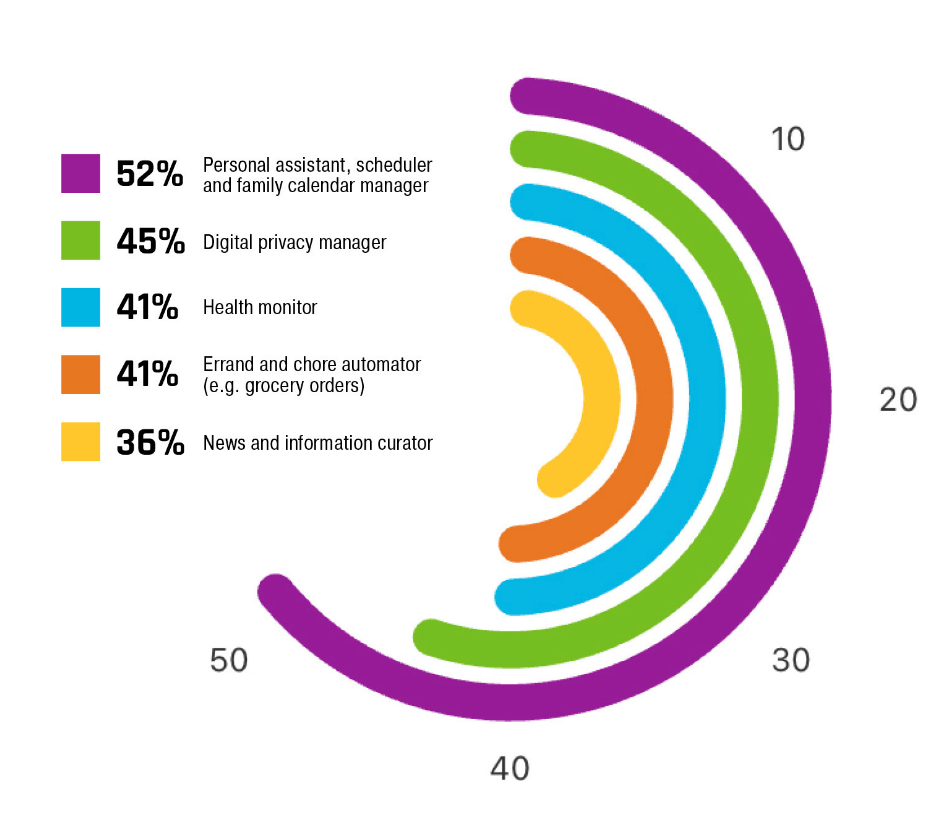 你认为到 2026 年,哪些能动型人工智能应用场景能在消费领域实现大规模普及或接近这一普及水平?