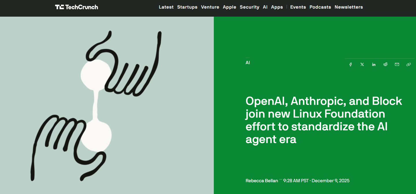 据 TechCrunch 12 月 9 日报道,该组织被命名为“Agentic AI Foundation”(AAIF),将作为与 AI 智能体相关的开源项目中立组织。AAIF 在启动时由 Anthropic、Block 和 OpenAI 的捐赠支持。