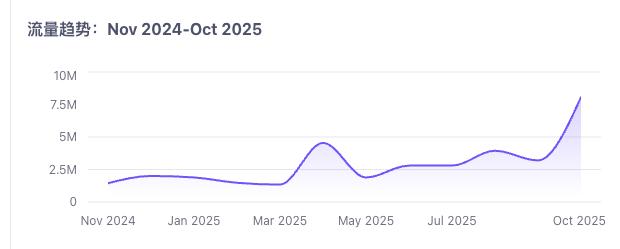 Hint.app 2024年11月-2025年10月网站访问量|图片来源:AIPure