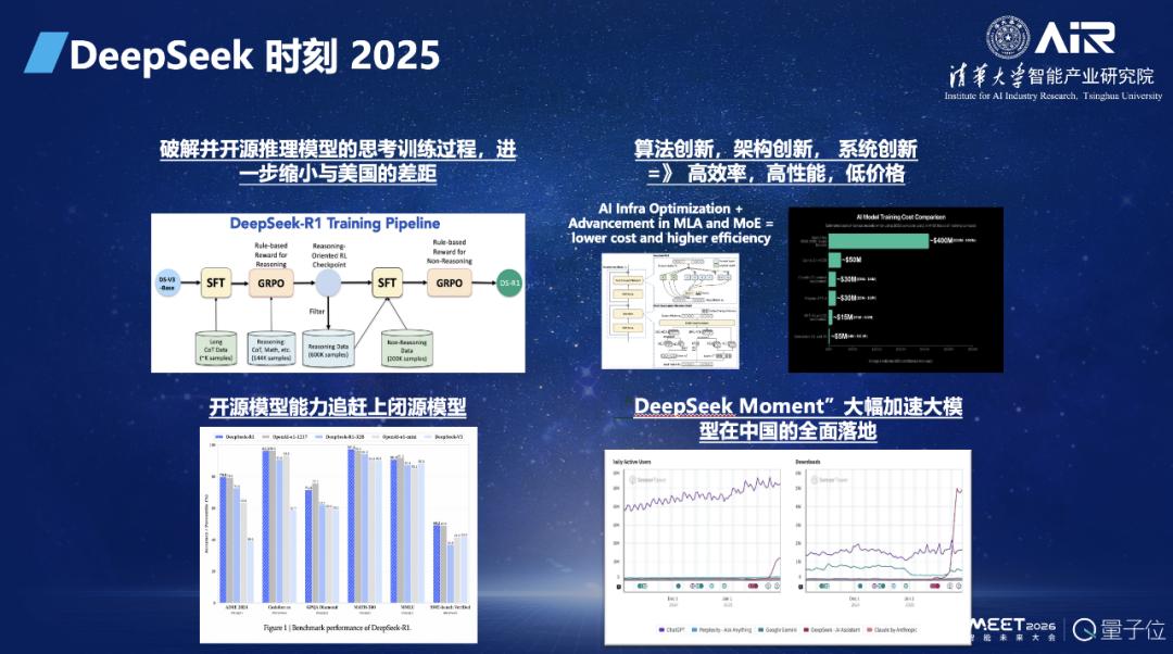 同时它又是个新的商业模式,它是开源的,用的MIT的license,这个本身是限制最少的开源架构,所以DeepSeek出来之后,在国内和全球范围内大幅度地加速了它的落地和应用,所以我把它叫做DeepSeek Moment,也是中国的一个路径。