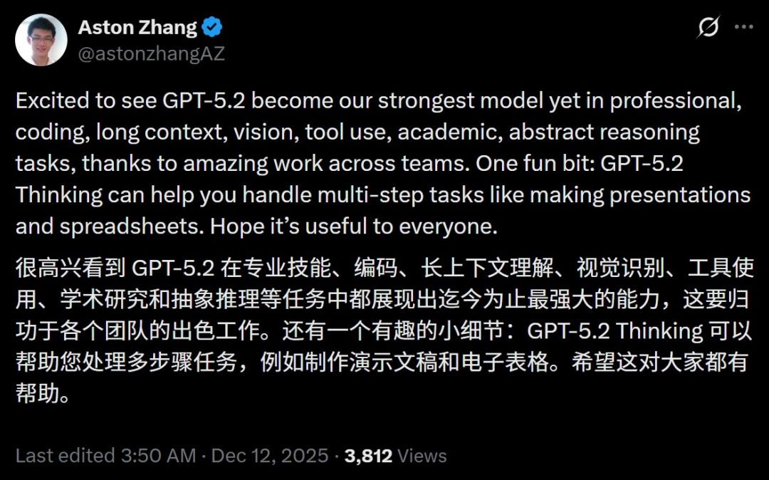 同以往一样,这次GPT-5.2的幕后功臣,依然有不少华人。
