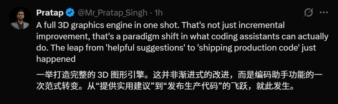 有人质疑道:这个图形引擎会不会是GPT-5.2调库完成的?CEO表示,所有代码和图形完全是从0开始写的。