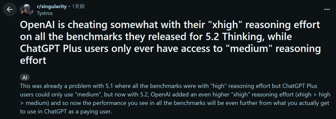 在社区的另一篇帖子中,也有人指出了OpenAI的作弊问题——