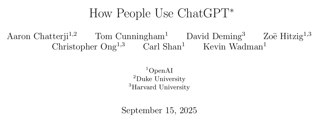 在新任首席经济学家Aaron Chatterji的带领下,OpenAI发布了一份名为《全球用户如何使用ChatGPT》的报告。