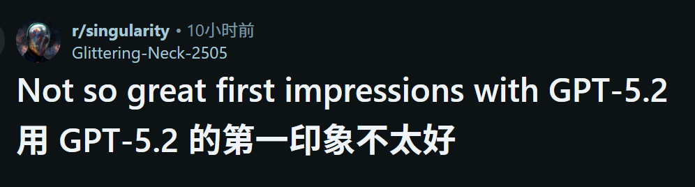 一位网友发帖称,自己对GPT-5.2的第一印象并不是太好。