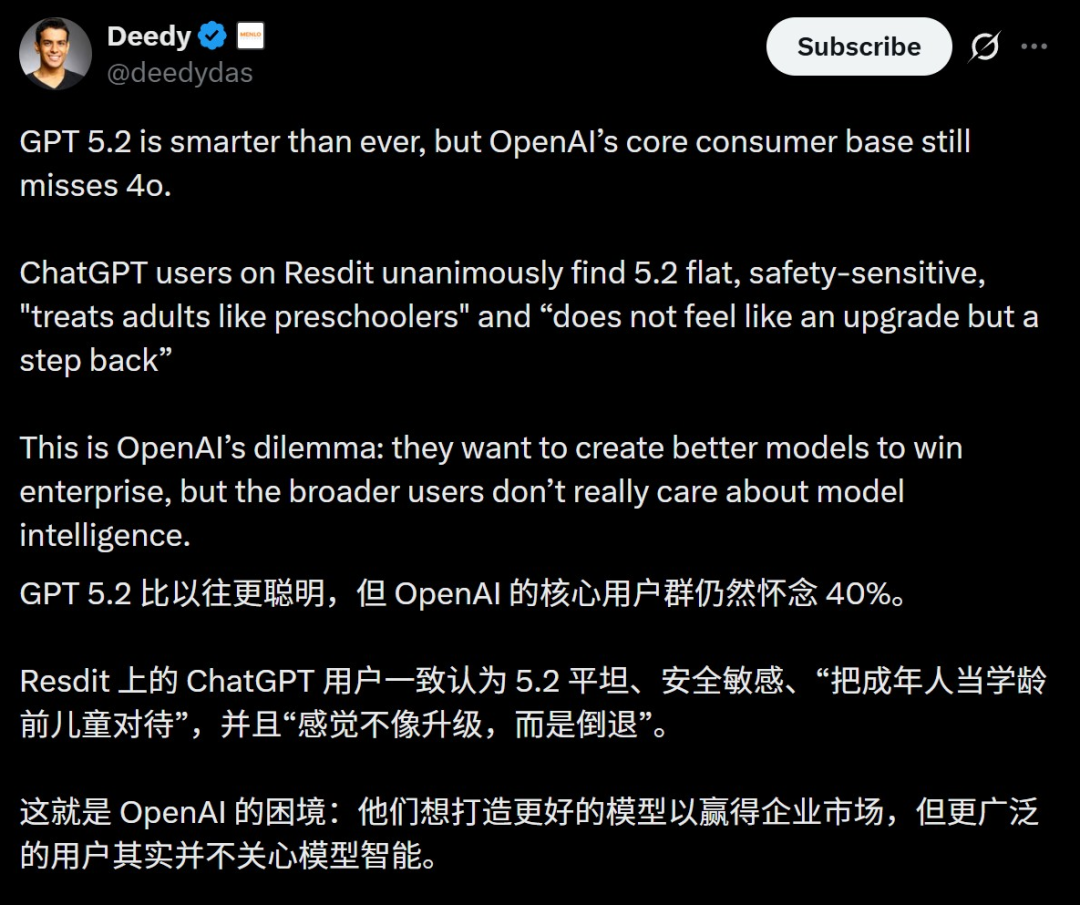 OpenAI的核心用户群体,仍然最想念GPT-4o。