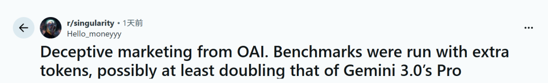 可以看到,OpenAI在基准测试中使用了额外的token,至少是Gemini 3.0 Pro的两倍。